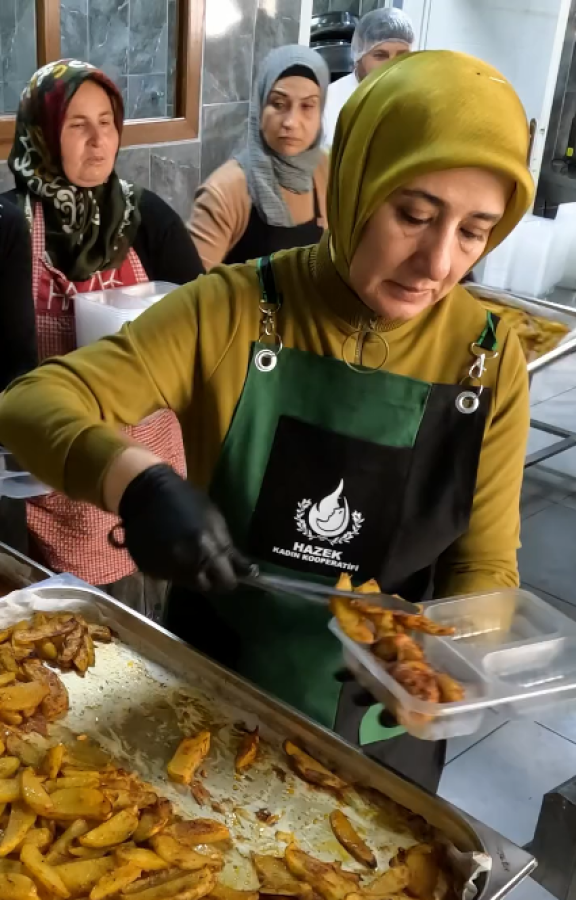 Belediyeye bağlı Kültür Evi’nde, HAZEK Kadın Kooperatifi tarafından özenle hazırlanan iftar yemekleri her gün ihtiyaç sahiplerinin sofralarına ulaştırılıyor. Mutfakta görev yapan ekibi ziyaret eden Başkan Sarı, emeklerinden dolayı çalışanlara teşekkür ederek kolaylıklar diledi.