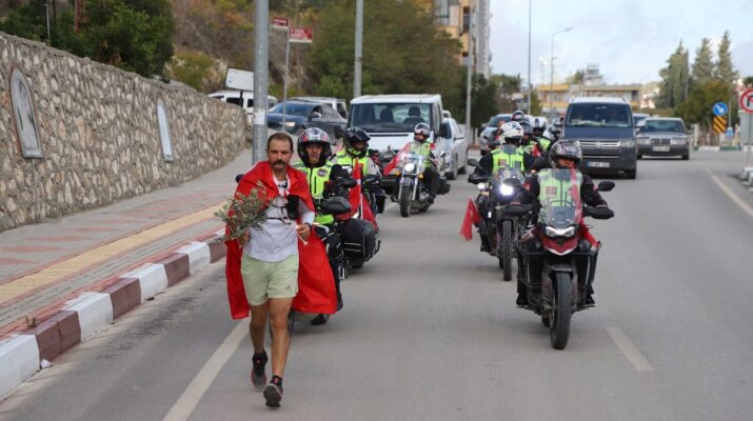 Hatay 6. Bölük Motosiklet Kulübü üyesi olan Ali Över, Antakya ilçesine bağlı Gülderen Mahallesi’nden başladığı koşusunu, Altınözü’nün Fatikli Mahallesi ilçe halkı tarafından coşkuyla karşılanarak tamamladı.